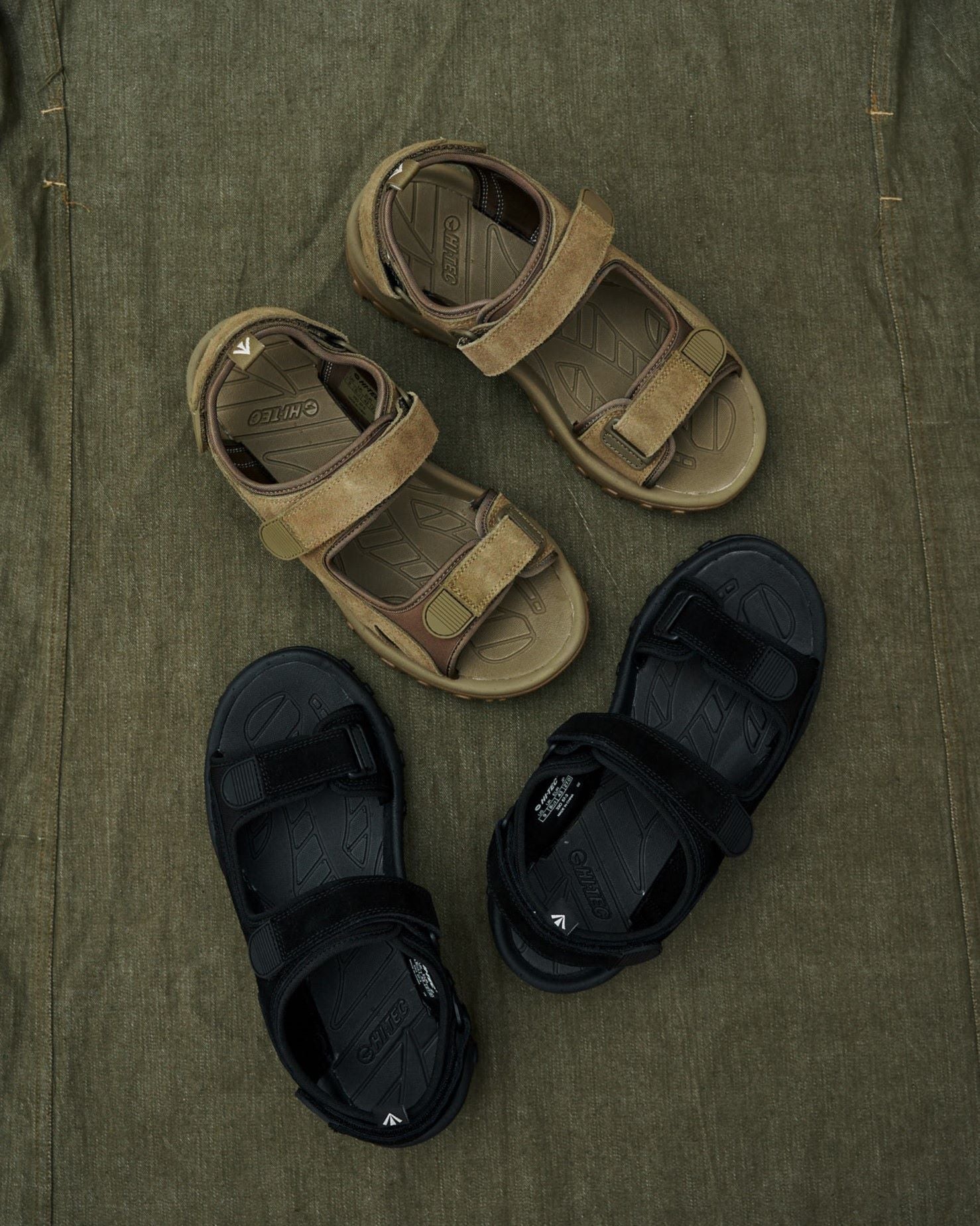 This is second collaboration J&S FRANKLIN's "EXCLUSIVE LINE" for the civilian market x British Hi-TEC company. Based on the British Military Warm Weather Sandal, which supplied to the British Army by Hi-TEC. For this limited edition, EVA sole has been specially approved, and exclusive colours of Tropical Sand and Black Coal are used. Adjustable hook and loop straps across foot and heel to ensure correct fit and Rubber sole provides comfort and durability.