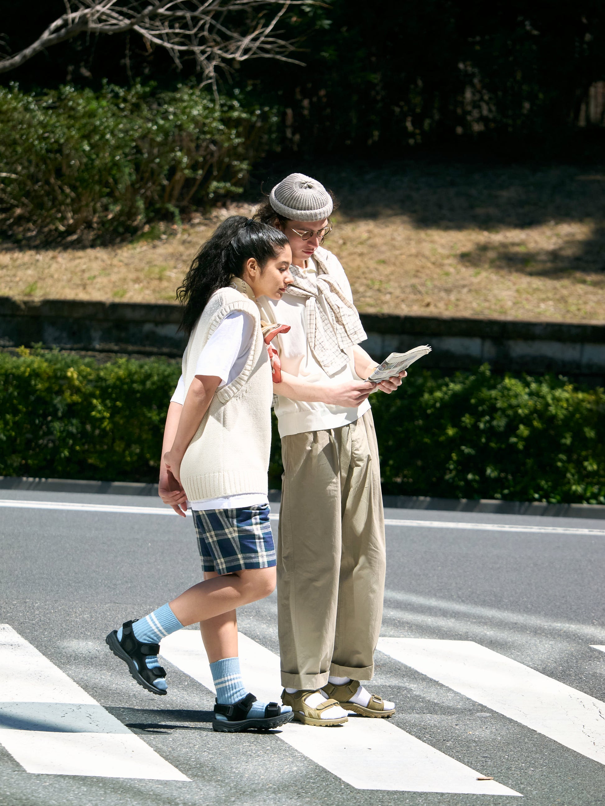 指先、甲、かかと部分がベルクロになっているため、ホールド感があり歩きやすい仕様です。ソールはしっかりとしたラバーソールで、柔らかく足にしっかりついてきてくれるので、疲れにくいです。